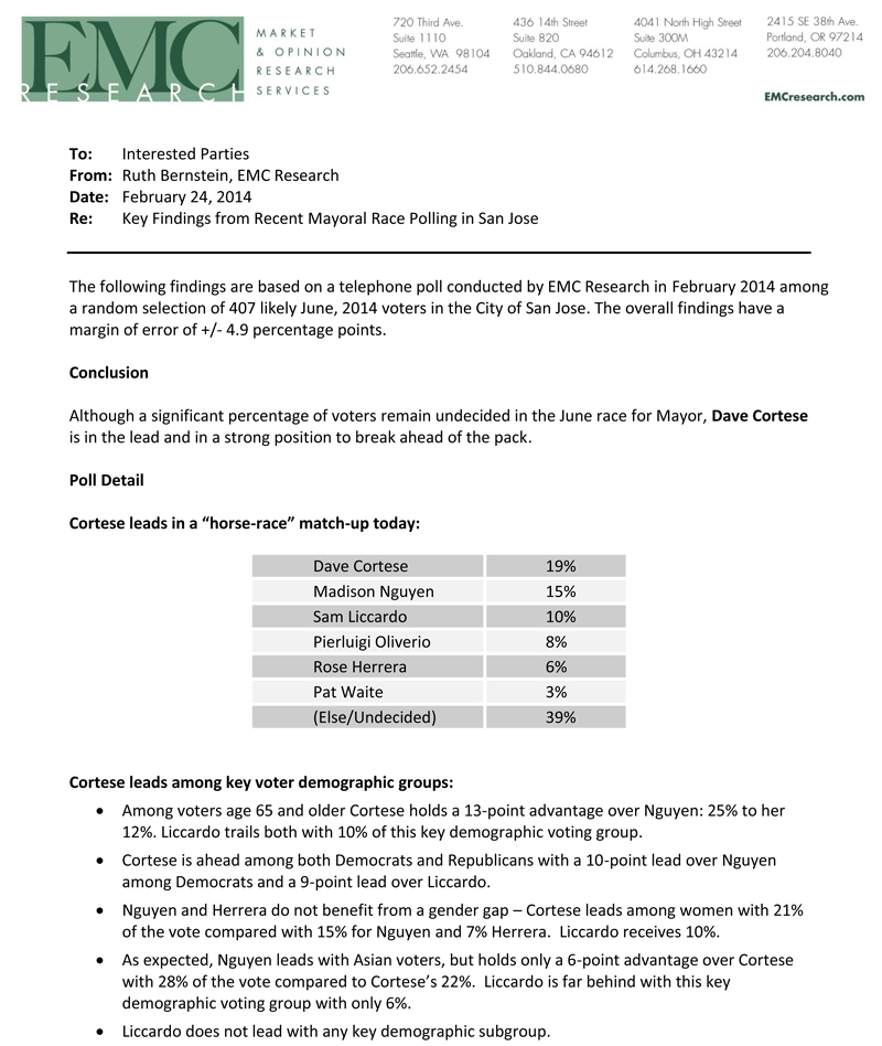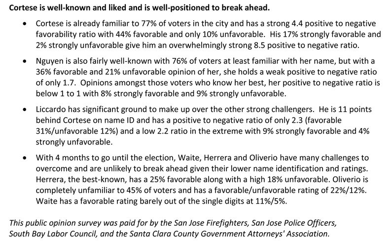 Cortese Has a Strong Lead in SJ Mayor’s Race