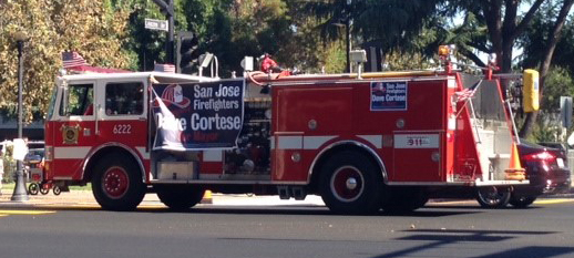 San Jose firefighters and their brethren from throughout the bay area fanned out through the city talking to voters with the help of an unusual fire truck cruising down the street with a big sign on it supporting Dave Cortese for San Jose Mayor.  The truck was in fact NOT a San Jose fire truck, but a privately owned fire…