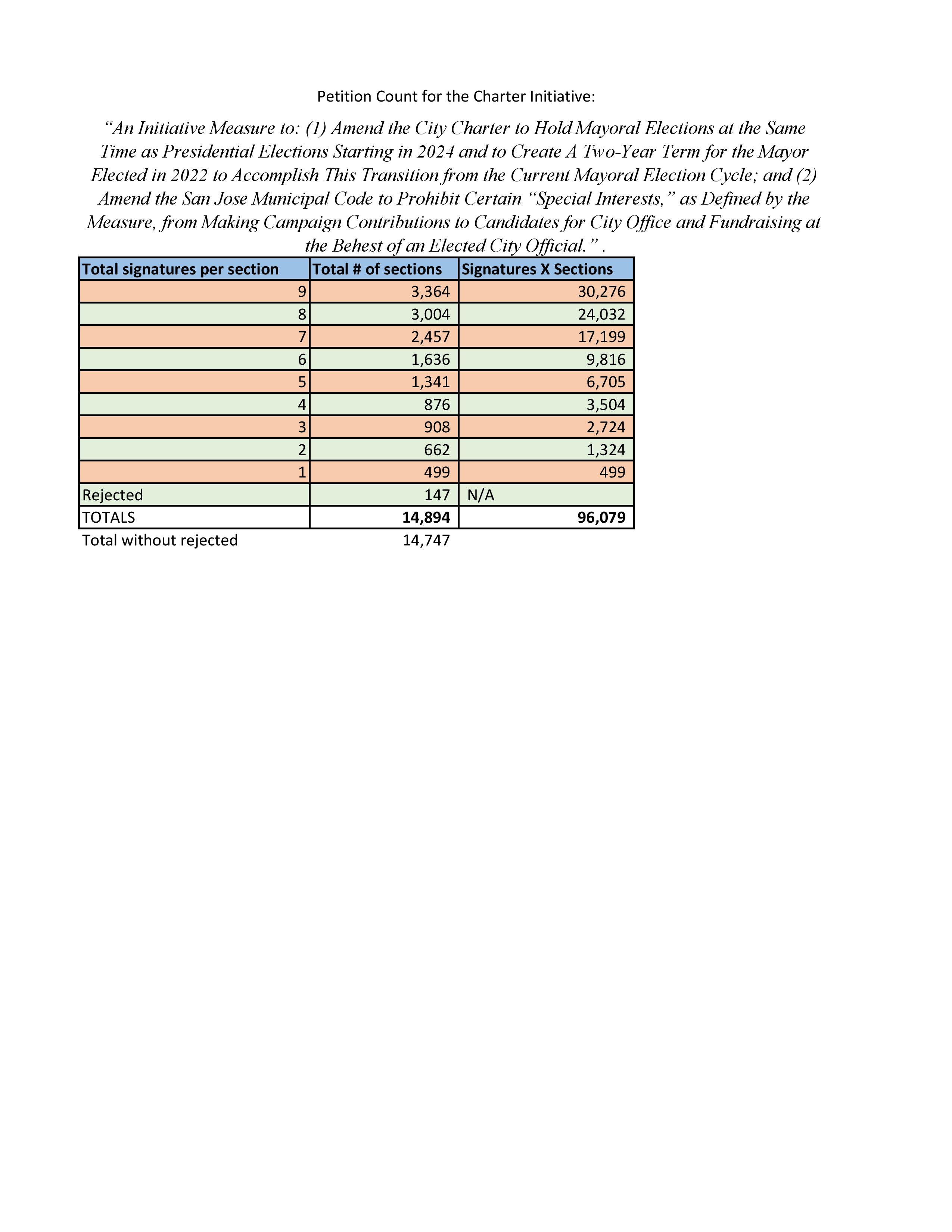 The order comes on the heels of the startling revelation that the San Jose City Clerk Toni Taber lost thousands of voter signatures on the initiative petition. The City Clerk reported receiving almost 97,000 signatures. See the clerk’s count here. However, she delivered only 94,202 signatures to the County Registrar of Voters.